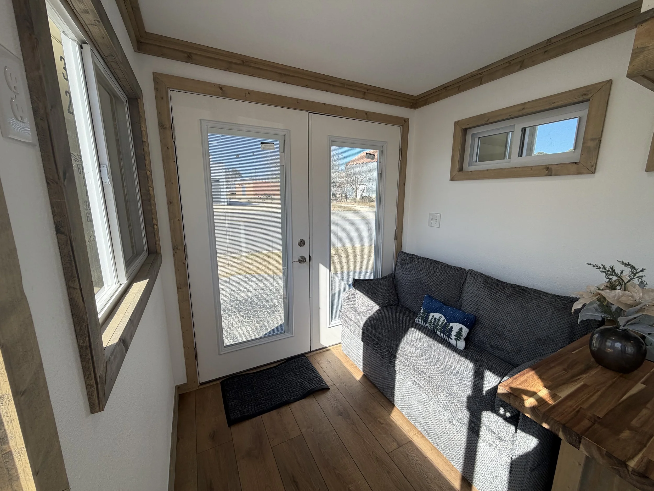 Double-glazed windows and insulated exterior door to reduce heat transfer and noise.